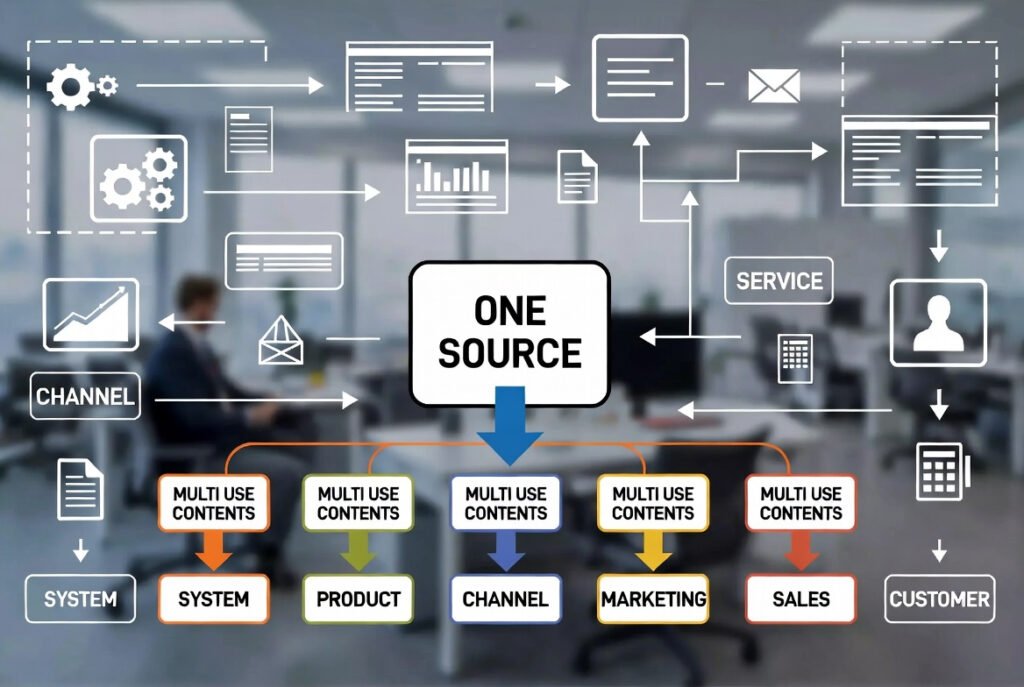 한 개의 원본 콘텐츠 = One Source 입니다. 콘텐츠 하나만 만들어서 다용도로 활용하겠다는 겁니다.