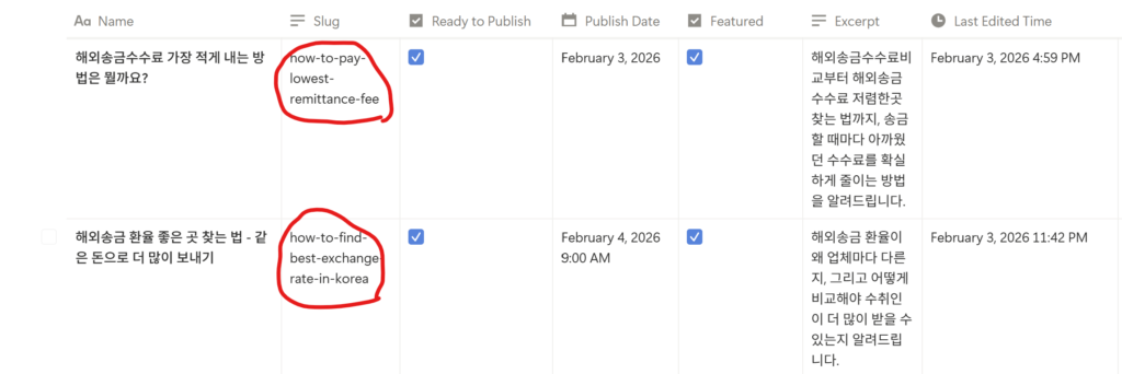 - 비즈니스 연동: RemitBuddy처럼 pSEO(Programmatic SEO)를 활용하는 서비스에서, 노션 블로그는 시스템이 채워주지 못하는 ‘전문가적 견해’를 가장 빠르게 덧붙일 수 있는 훌륭한 CMS(콘텐츠 관리 시스템)가 됩니다.