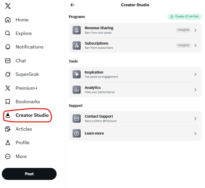 - X 프리미엄은 필수입니다. X에서 프리미엄 구독 유저를 보통 ‘파딱(파란딱지)’라고 하는데요. 프리미엄 구독 없이는 수익화 조건 달성이 불가합니다.